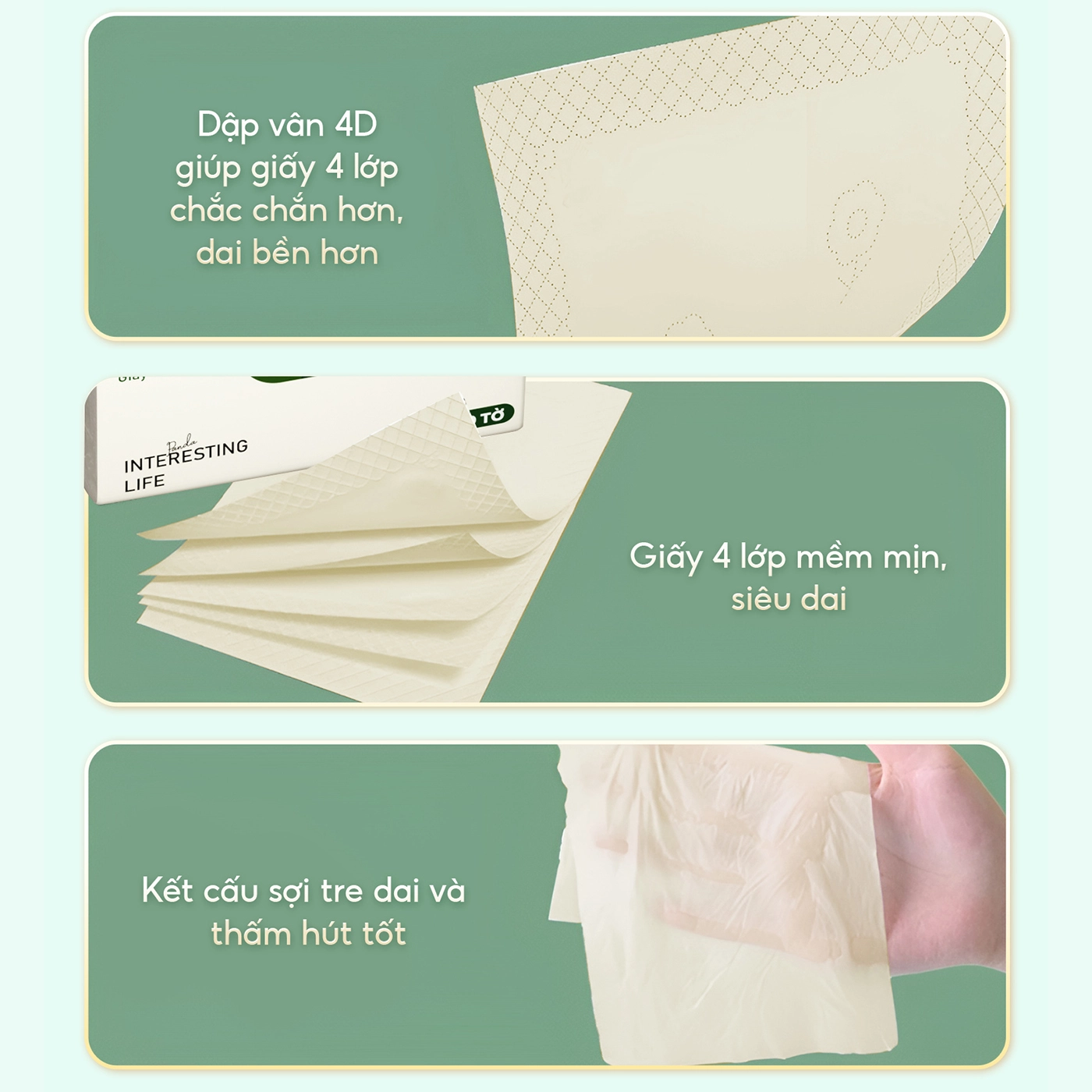 - Giấy dập vân 4D dai bền và mềm mịn hơn.