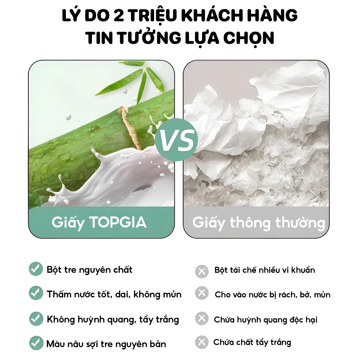 - Thấm nước tốt, dai, không mủn, không chất tạo màu.